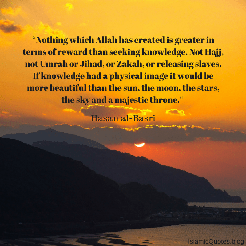 “Nothing which Allah has created is greater in terms of reward than seeking knowledge. Not Hajj, not Umrah or Jihad, or Zakah, or releasing slaves. If knowledge had a physical image it would be more beautiful than the sun, the moon, the stars, the sky and a majestic throne.” [1]