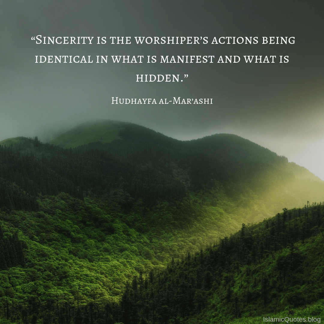Hudhayfa al-Mar’ashi [1] said: “Sincerity is the worshiper’s actions being identical in what is manifest and what is hidden.” [2]